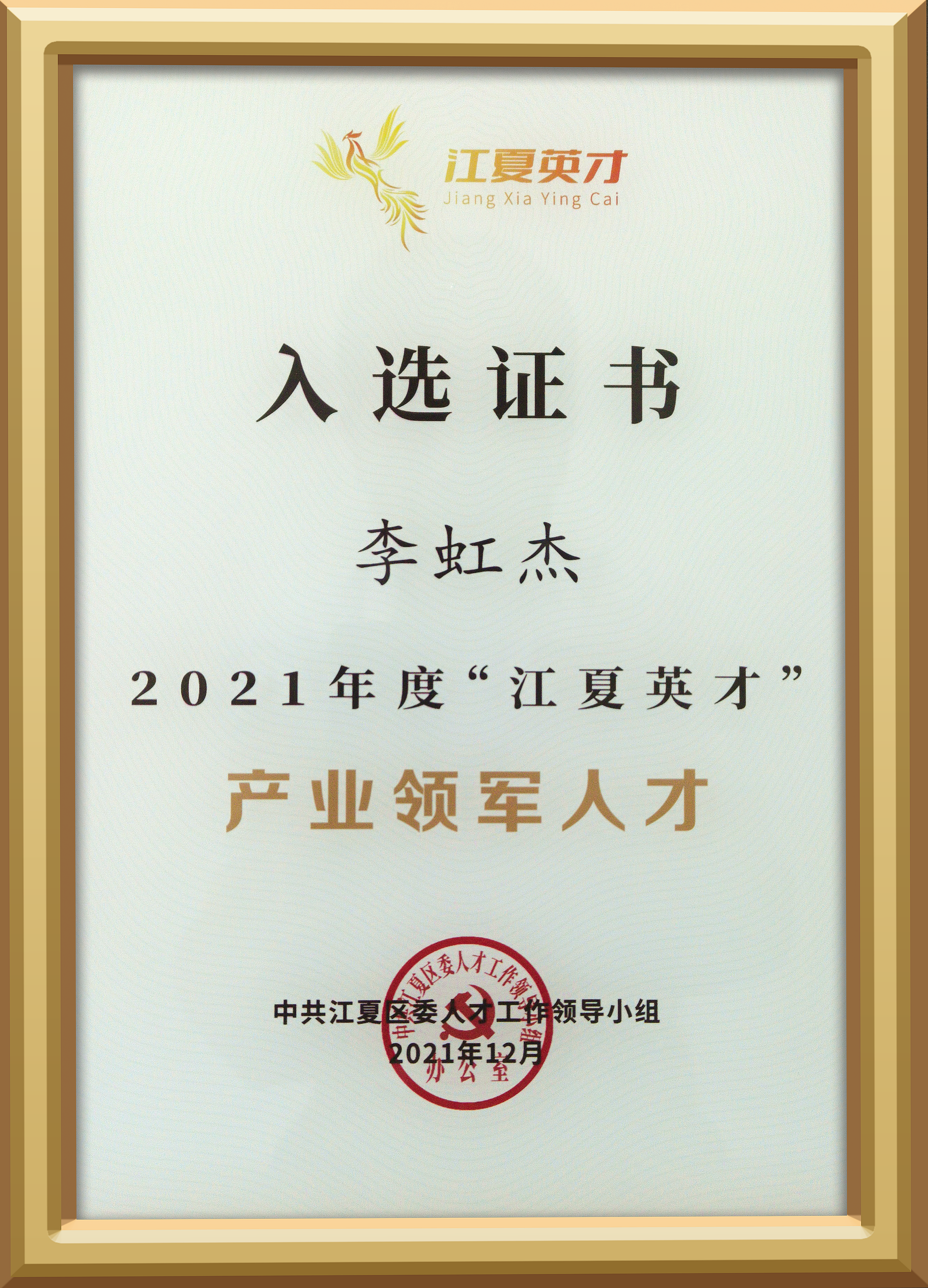 2021年12月7日,中共江夏區(qū)委人才工作領(lǐng)導(dǎo)小組辦公室正式對外發(fā)布了《關(guān)于印發(fā)2021年度江夏英才計劃“五才評選”入選人才名單的通知》,公司李虹杰董事長榮膺“十大將才(產(chǎn)業(yè)領(lǐng)軍人才)”稱號。